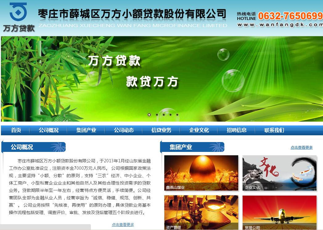所屬行業(yè): 單位名稱:棗莊市萬方小額貸款股份有限公司網(wǎng)站地址:http://www.zzwh.com/